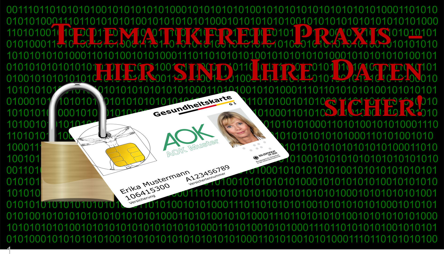 Wir sind eine telematik-freie Praxis. D.h., Ihre Daten werden nicht in einer